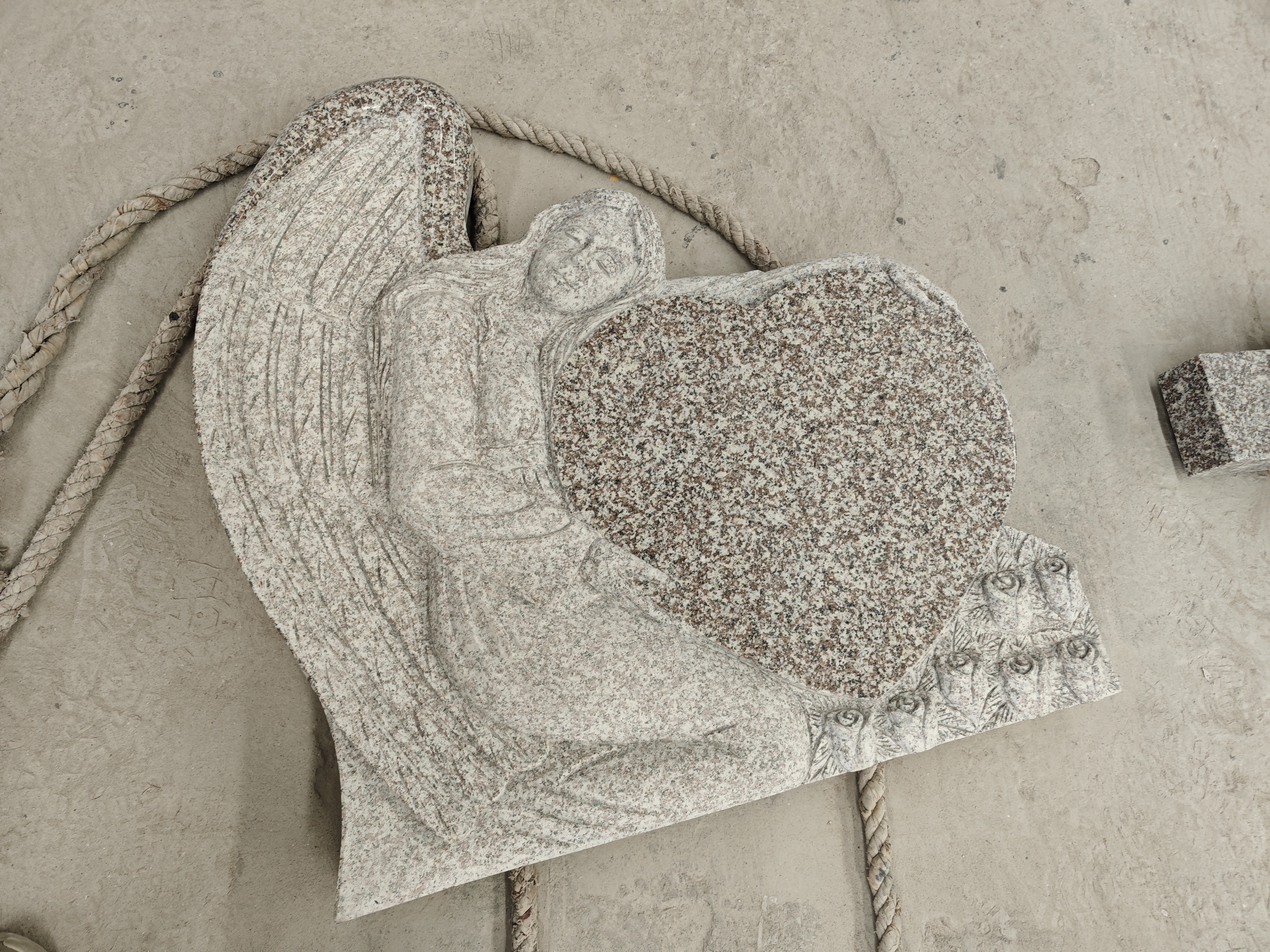 We use computer-controlled sandblasting for lettering and hand-carving for complex designs (crosses, flowers, angels). Minimum engraving depth of 3 mm ensures long-lasting visibility outdoors.